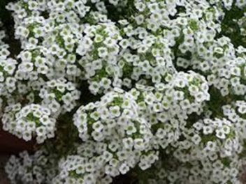 Ампельный алиссум. Цветы очень большие насыщенно белого цвета с прекрасным душистым запахом. Растение очень устойчивое к высоким температурам в период роста и цветения.