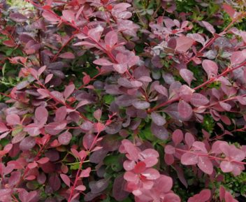 Описание: сорт интересен прежде всего округлыми ярко-красными листьями до 5 см длиной. Цветет (V) желто-красными цветками до сантиметра в диаметре, собранными в соцветия. Эффектны также блестящие красные съедобные плоды.