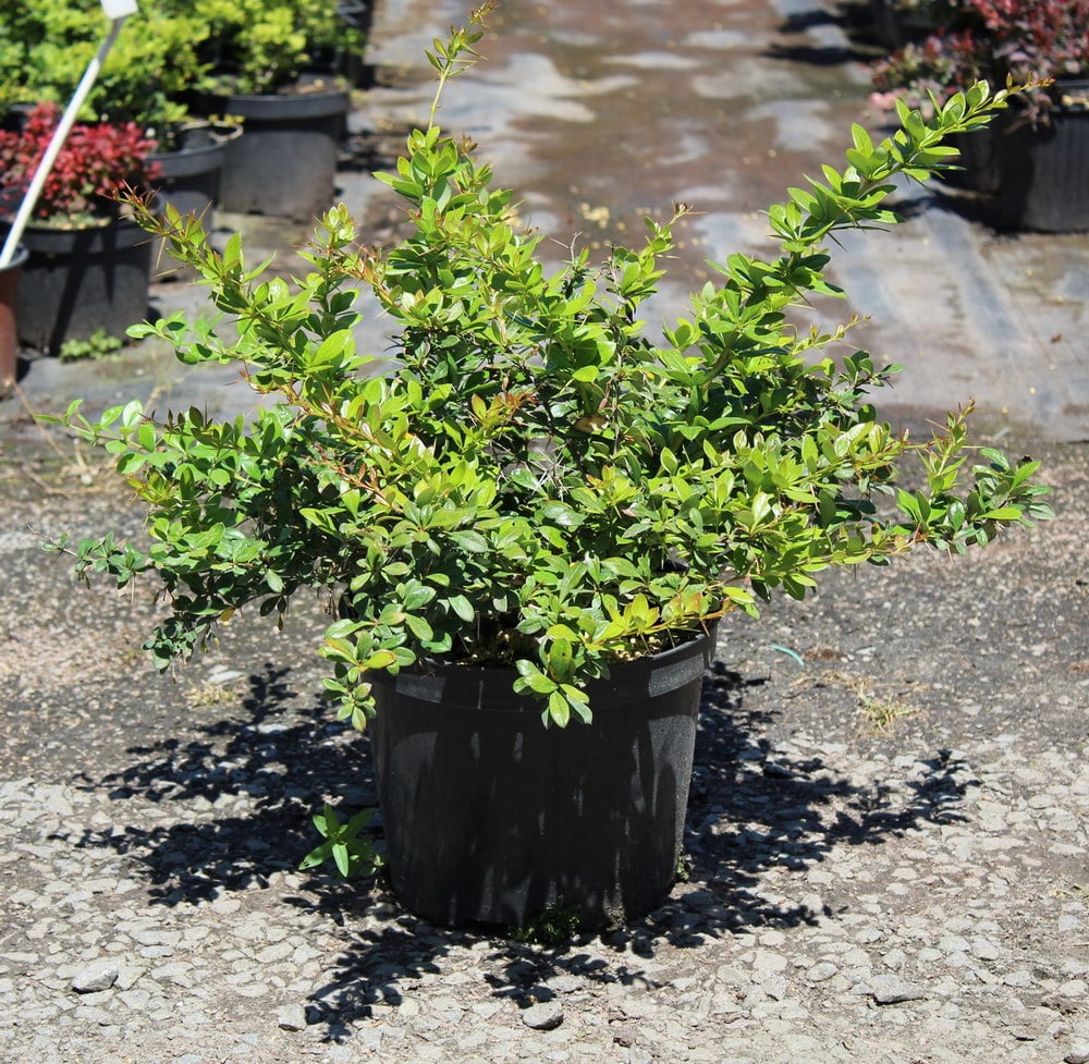 Описание: крона округлая, плотная, с дугообразными побегами, постепенно отклоняющимися. Кора красно-коричневая, бороздчатая, с тонкими трехраздельными или одинарными колючками длиной 2,5 см. Листья кожистые, темно-зеленые, блестящие, обратнояйцевидной формы, длиной 2-4 см. Цветки желтые (V-VI). Плоды небольшие, черные.