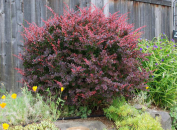 Описание: раскидистый кустарник с округлой формой кроны. Листья мелкие, пурпурно-красные, осенью – светло-карминные, побеги красно-пурпурные; плоды многочисленные.
