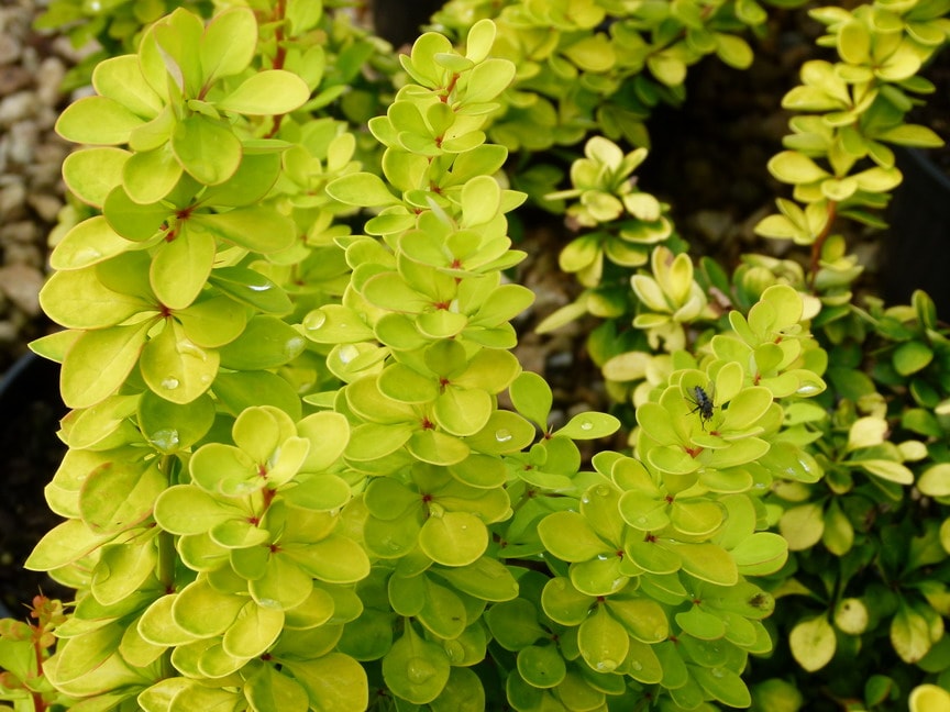 Описание: сорт с красивой узкой колоновидной плотной кроной. Листья ярко-желтые, мелкие, округлой формы, не выгорают на солнце, осенью краснеют. Побеги прямые, молодые приросты насыщенно оранжево-желтые.