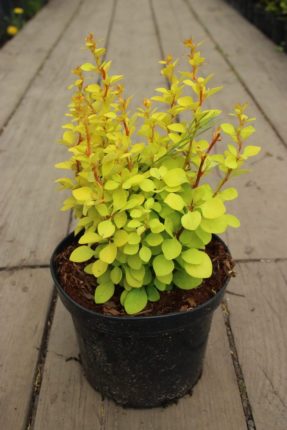 Описание: колоновидный кустарник с прямостоячими побегами, широкой и очень плотной кроной. Листья крупные, золотисто-желтые, часто с яркой карминово-розовой каймой, осенью оранжево-красные. Молодые побеги розово-оранжевые.