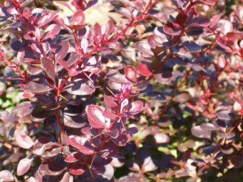 Описание: кустарник с компактной заокругленной формой кроны и хорошо разветвленными побегами. Основные ветви – вертикальнорастущие, а боковые – дугообразно отклоненные, колючие. В молодом возрасте побеги красно-коричневого цвета, а кора взрослого растения – серая. Листья продолговатой формы, длиной 2-3 см и 2 см в диаметре, цвет листвы меняется на протяжении всего летнего сезона: весной листья пурпурно-красные, летом они приобретают приятный винный цвет, а осенью становятся кораллово-алыми. Цветки (V) мелкие, желтой окраски, собранные в кисти по несколько штук. Плоды продолговатой формы, красные.