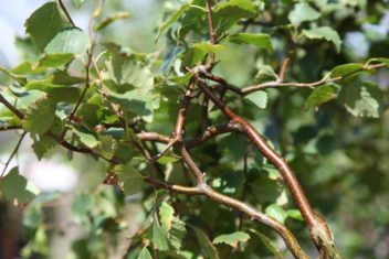 «Гадкий утёнок» или «белый лебедь». Дерево относительно невысокое для вида. Кора молодого дерева серебристая, с вкраплениями розового и коричневого цвета. С возрастом кора становится белой с легкими оттенками бронзы. Форма кроны- плакучая. Побеги изогнутые и закрученные. Светолюбива, переносит полутень. Не требовательна, но лучше растет на свежих супесчаных или суглинистых почвах. Используется для одиночных и групповых посадок, создания древесно-кустарниковых групп совместно с породами, имеющими плотные и темные кроны. Форма кроны: шарообразная. Цветки: серёжки длинные, зелено-желтые свисающие.