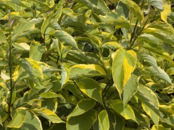 Описание: кустарник с темно-красными побегами, особенно яркими весной и поздней осенью. Очень похож с «Spaethii», в отличие от которого листва меньшего размера, слегка поникающая, зеленая с розовым оттенком и с широким желтым, слегка розовеющим окаймлением.