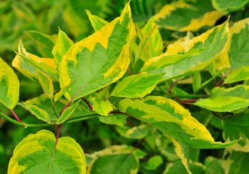 Описание: кустарник с широкой кроной и кораллово-красными побегами. Зимняя окраска побегов коричневато-красная. Листья длиной 5-7 см, ярко-зеленые, неравномерно окаймленные по всему периметру широкой золотистой полосой, с пятнами и полосками. Окраска сохраняется в течение всего вегетационного периода. При распускании листья имеют красивый красновато-оранжевый оттенок, осенью их окраска фиолетово-пурпурная, с ней эффектно контрастируют кисти белых плодов.