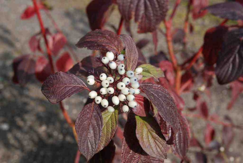 Описание: компактный кустарник с раскидистой, достаточно плотной кроной, образованной ярко-красными побегами. Листья овальные, темно-зеленые, снизу сизовато-белые, немного морщинистые, осенью приобретают яркую пурпурно-фиолетовую окраску. Ценится за обильное цветение и декоративное плодоношение, интенсивную зимнюю окраску побегов.