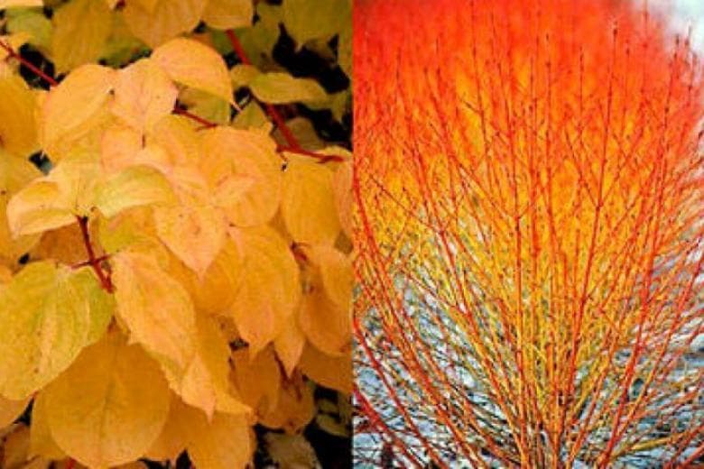 Описание: молодые побеги-зеленые, немного опушенные, постепенно побеги меняют цвет на пурпурно-красный, а к осени становятся оранжево-красными или оранжево-малиновыми. Листья яйцевидные, летом – зеленые с четким жилкованием, осенью окрашиваются в желто-красно-малиновые тона. Цветки мелкие, белые, в щитковидных соцветиях, цветёт в июне, плоды мелкие шаровидные костянки, сине-черные или черные в созревшем состоянии.