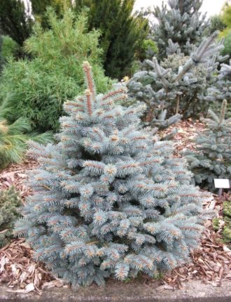 Дерево средней величины. Крона очень густая. Хвоя голубая со стальным отливом, жесткая, очень колючая. Применяется для одиночных и групповых композиций, для стриженных изгородей. Зона USDA 3. Окрас хвои: голубой.