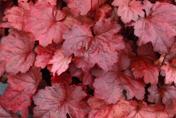 Маленький, пышный куст, с плотными, блестящими, красно-коричневыми листьями с розовым крапом. Высотой 20-30см, шириной 35см. Цветоносы высокие, с белыми цветами. Листья очень большие, блестящие, кожистые. Весной появляются поразительно ярко-красными, и становятся тёмно-пурпурными с возрастом. А пестрые пятна становятся светлее и более заметными. Над розеткой пестрой листвы возвышаются белые соцветья из мелких цветочков высотой до 30 см. Цветет июнь-июль.