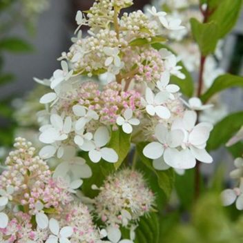 Описание: куст компактный, густой. Побеги сильные. Соцветия состоят из стерильных и фертильных цветков. Стерильные цветки вначале кремово-белые, через 2 недели окрашиваются в нежно-розовый цвет, начиная с нижней части соцветия по направлению к вершине. Каждый цветок имеет различный оттенок розового. Цветение с VII по X. Листья темно-зеленые с глубокими прожилками.