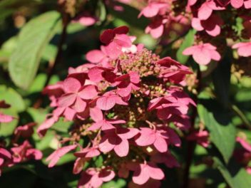 Описание: крона густая, компактная, с вертикальными, не разветвленными, прочными побегами. Лист темно-зеленый, удлиненный, среднего размера. Соцветия крупные, длиной до 30-35 см, пышные, состоят из стерильных цветков. Характерной особенностью сорта являются зубчатые края лепестков. При роспуске белые, но быстро розовеют и осенью становятся пурпурно-красными. Цветет продолжительно и обильно с VII по X.