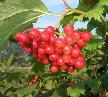 Описание: куст среднерослый, побеги гладкие, светло-серые, с чечевичками. Почки крупные. Листья светло-зеленые, 3-5-лопастные, опушенные с нижней стороны. Черешки с двумя парами железок у основания листовой пластинки. Плоды средней величины (0,5-0,6 г), пунцово-красные, шаровидной формы. Вкус слабогорький (4 балла). Созревают в конце IX.