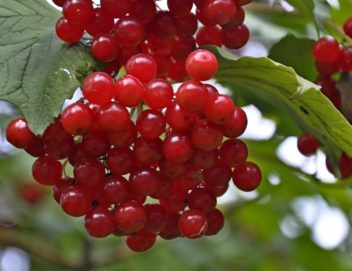 Описание: высокий куст, побеги светло-серые, гладкие. Почки крупные. Листья крупные, зеленые, 3-5-лопастные. Черешки длиной 17-20 мм с двумя парами железок у основания листовой пластинки. Цветки мелкие, белые, собраны в соцветие – зонтиковидный щиток. Плоды крупные (0,6-0,8 г), ярко-красные, эллиптической формы. Семена крупные. Вкус горький (3балла). Созревают в конце IX.