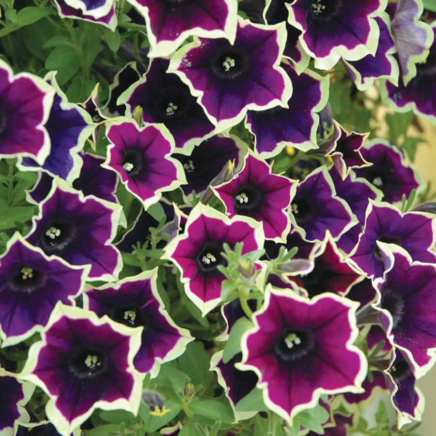Петуния Cascadias Rim Magenta потрясающий сорт! С привлекательным бархатисто — фиолетовым окрасом и четкой кремовой каймой. Петуния с большой силой роста. Цветение активное плотное в течении всего сезона.