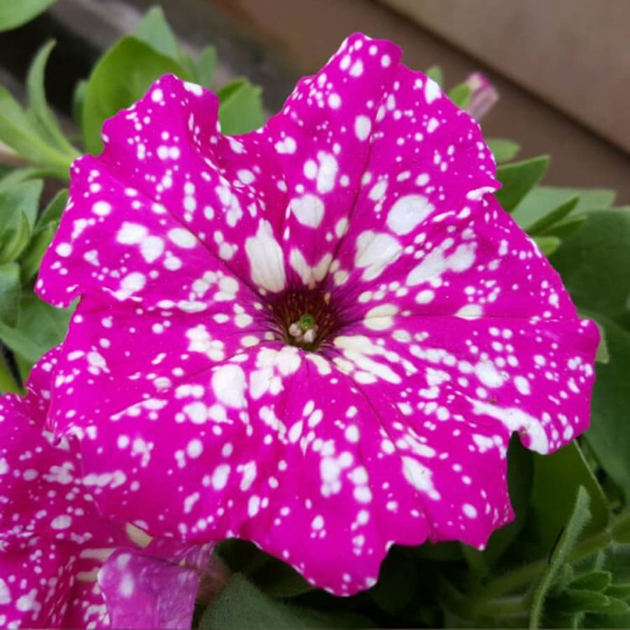 На растении невероятное количество ярко-розовых простых цветков — каждый с нерегулярными белыми вкраплениями, так что ни один цветок не повторяет другой. Куст некрупный, хороши ветвится, но требует несколько прищепок, для более красивой формы. Устойчив к дождю и ветру.
