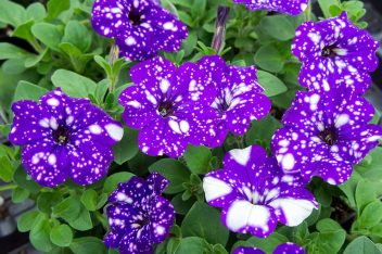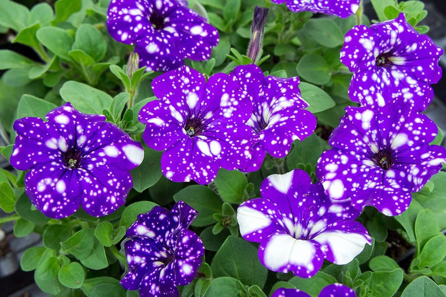 Петуния ампельная «Звездное небо», непредсказуемый сорт петунии. Новинка 2016 года. Каждый цветок, неповторимой окраски. Меняется в зависимости от освещения, подкормки, полива и тепла. Название петунии, говорит само за себя, на темно синем цветке образуются множество белых точек.
