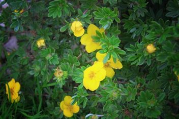 Описание: кустарник со стелющейся кроной. Листья голубовато-серо-зеленые, ланцетные. Цветки ослепительно-желтые, крупные до 5 см в диаметре. Время цветения с VI по X.