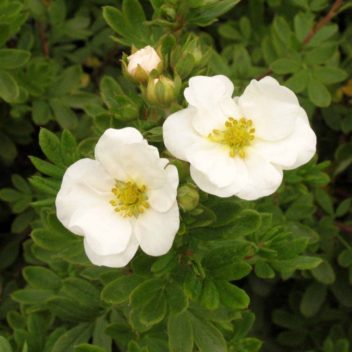 Описание: крона подушковидная. Листья мелкие, светло-зеленые. Цветет обильно с VI по X. Цветки белые, до 4 см в диаметре.