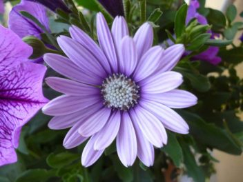Однолетнее растение с контрастно окрашенными цветками фиолетового цвета и зелеными листьями. Цветение Май-Сентябрь.