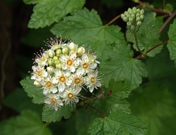 Описание: низкий стелющийся кустарник с густой полушаровидной кроной с ярко-зелеными листьями на ярких красных раскидистых побегах. Листья 3-5-лопастные, до 10 см длиной, не меняют окраски в течение сезона, оставаясь сочно-зелеными до поздней осени. Цветет белыми цветками, собранными в щитковидные соцветия.