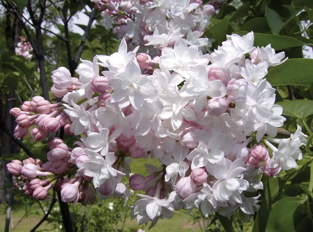 Описание: раскидистый кустарник. Листья крупные, яйцевидно-удлиненные, со стреловидно заостренными кончиками. Цветки крупные, 2,5 см в диаметре, розовато-белые с перламутровым оттенком, махровые (в 3, реже 2 сближенных венчика). Соцветия крупные собраны из 1-2 пар пирамидальных ажурных метелок. Цветет в V-VI.