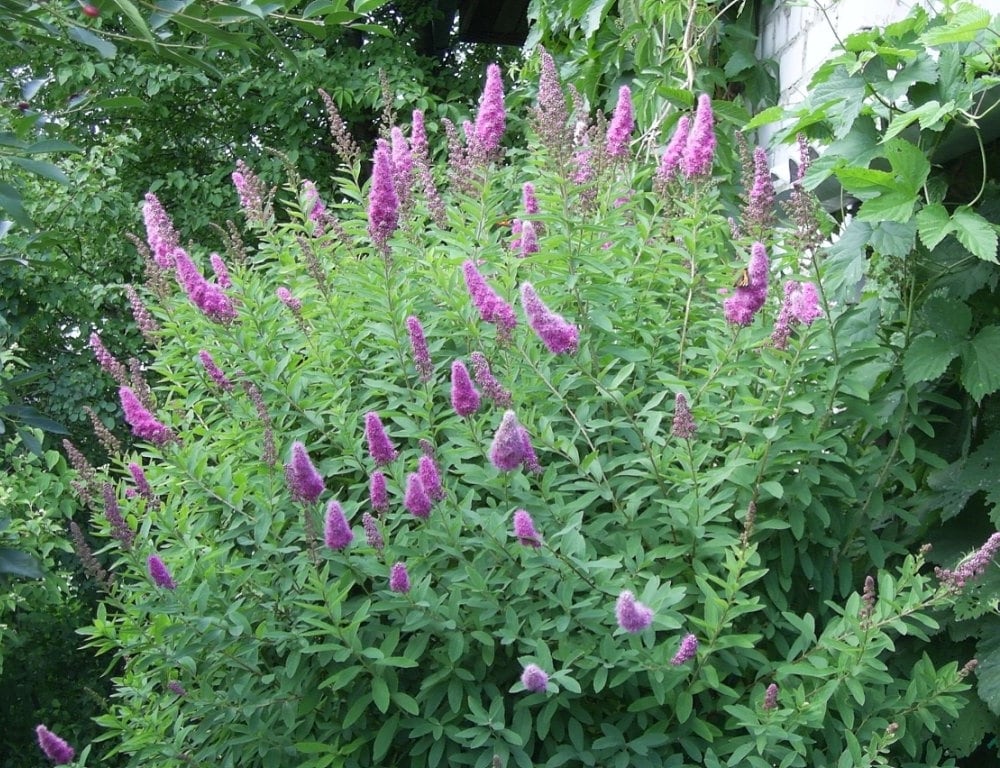 Описание: пряморастущий кустарник. Листья удлиненно-ланцетные, темно-зеленые, с нижней стороны светлее. Осенью расцвечивается в желтые, бордовые, красные тона. Цветет с конца VI до середины IX ярко-розовыми цветками, собранными на концах побегов текущего года в густые пирамидальные или цилиндрические метельчатые соцветия до 15 см длиной.