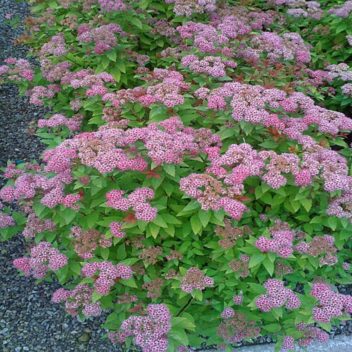 Описание: компактный кустарник с округлой кроной. Молодые листья красноватые, по мере роста становятся темно-зелеными, а к осени приобретают тона от красных до бордовых. Цветет обильно в VI-VIII, может повторно зацветать осенью. Цветки многочисленные, яркие, лилово-красного цвета.