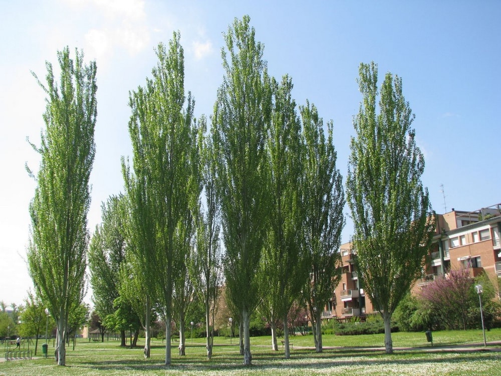 Тополь пирамидальный обладает очень узкой кроной. Ветви идут от основания ствола. Своей монументальной, пирамидальной, темно-зеленой кроной придает особый, южный характер пейзажу, напоминая стройные, пирамидальные кипарисы. Хорош для быстрого создания зеленых защитных стен. Не производит пуха. Весьма эффектное дерево в одиночных, групповых, рядовых и аллейных посадках. Зона зимостойкости: USDA 4 (от -28,9°C до -34,4°C). Форма кроны: узкопирамидальная.