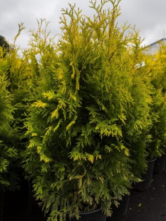 Туя западная имеющая разную окраску в зависимости от времени года. Молодая хвоя оранжевая, затем становится зеленой, а зимой коричневеет. К плодородию почв не требовательна. Морозостойкая. Может подгорать на весеннем солнце. Используется в одиночных и групповых посадках, в живых изгородях. Зона USDA 4. Форма кроны: коническая. Окрас хвои: золотисто-желтый.