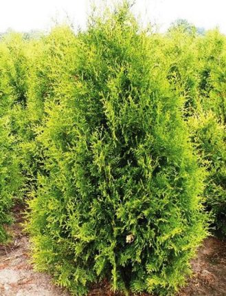 Золотисто-желтый вариант известного сорта туи западной Брабант. Быстрорастущий пирамидальный хвойный кустарник. Хвоя золотисто-желтая, сохраняет свой цвет зимой и летом. Не страдает от солнечных ожогов. Предпочитает умеренно влажные, хорошо дренированные почвы. Используют в одиночных и групповых посадках, в аллейных насаждениях. Зона USDA 4. Форма кроны: пирамидальная. Окрас хвои: желтая.