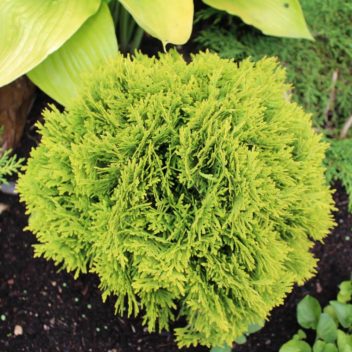 Медленнорастущий кустарник шаровидной формы. Крона плотная, хвоя желтая. Зимой хвоя приобретает бронзовый окрас, весной снова становится ярко-желтой. Используют в одиночных и групповых посадках, в японских садах, альпинариях. Зона USDA 4. Форма кроны: шаровидная. Окрас хвои: желтая.