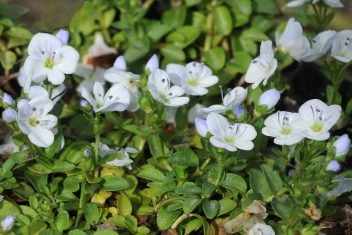 Многолетнее корневищное растение, образующее плотные ковры высотой 10—15 см. Листья мелкие монетовидные. Соцветия небольшие пазушные. В каждой пазухе одновременно цветут по 1-2 цветка, благодаря чему кажется, что растение покрыто одиночными цветками. Цветет в мае нежно-голубыми цветками. Есть формы с белыми и розовыми цветками.