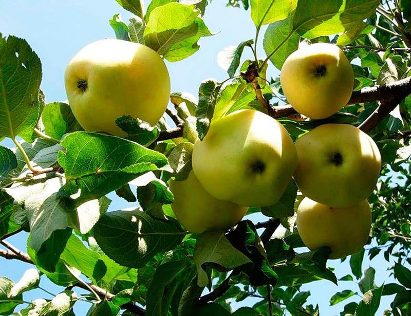 Дерево низкорослое, компактное, плоды жёлто-зелёные с розовыми полосками, массой 150-200г, мякоть белая, сочная, отличного кисло-сладкого вкуса. Созревают в сентябре, хранятся 3 месяца, вступают в плодоношение на 2-й-3-й год после посадки.